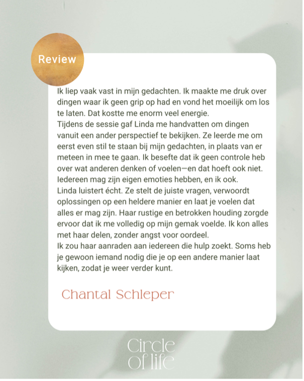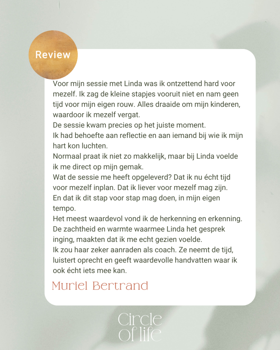 Stap voor stap vind je rust in je hoofd en hart én je leert jezelf opnieuw kennen in deze nieuwe werkelijkheid.