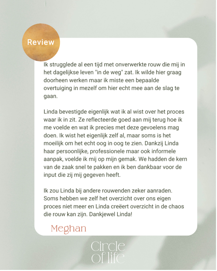 > We werken stap voor stap aan het integreren van rouw in je leven.